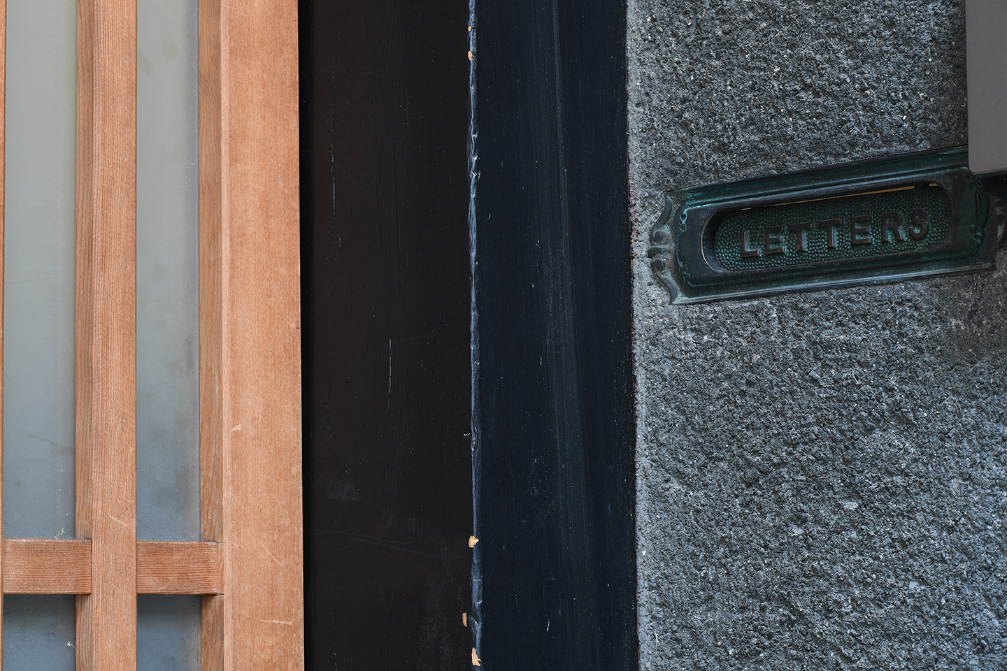 入り口には年代物の郵便受けがある。